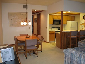 Spacious unit, well maintained, fully furnished & equipped. Inviting field stone fireplace,excellent location, ski-out, ski-in access to orange & brown chairlifts & cross country trails at Nub’s Nob South with superb view of ski hills.